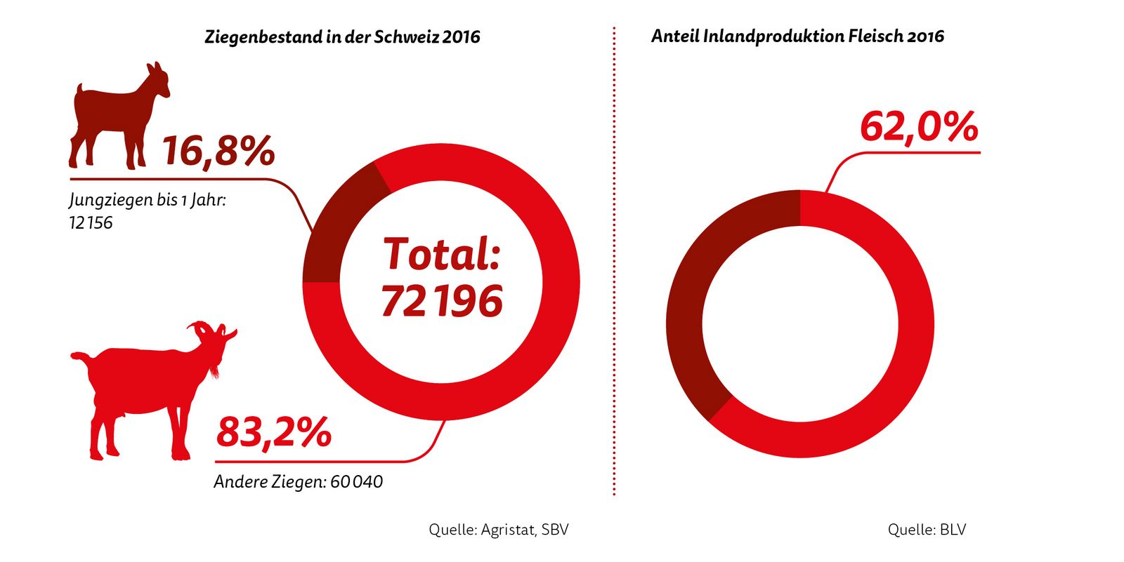 Die Ziegen gehörten zu den ältesten Haustieren überhaupt und dienten früher vorwiegend der Selbstversorgung. Heute gilt die Schweiz als Ursprungsland der modernen Ziegenzucht. Ziegen werden vor allem zur Milchproduktion gehalten. Für Rassen wie die Burenziege oder die Walliser Schwarzhalsziege ist aufgrund ihrer besonderen Haltungsformen dagegen die Fleischproduktion der bedeutendste wirtschaftliche Faktor.